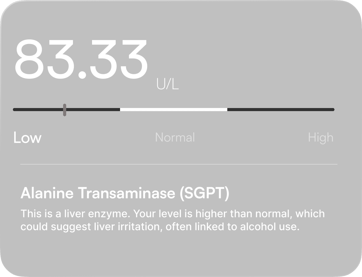 Every sip, every sleepless night, every rushed meal leaves a mark inside your body. We get you tested and combine your results with your lifestyle patterns to show how your daily life is truly impacting your health.