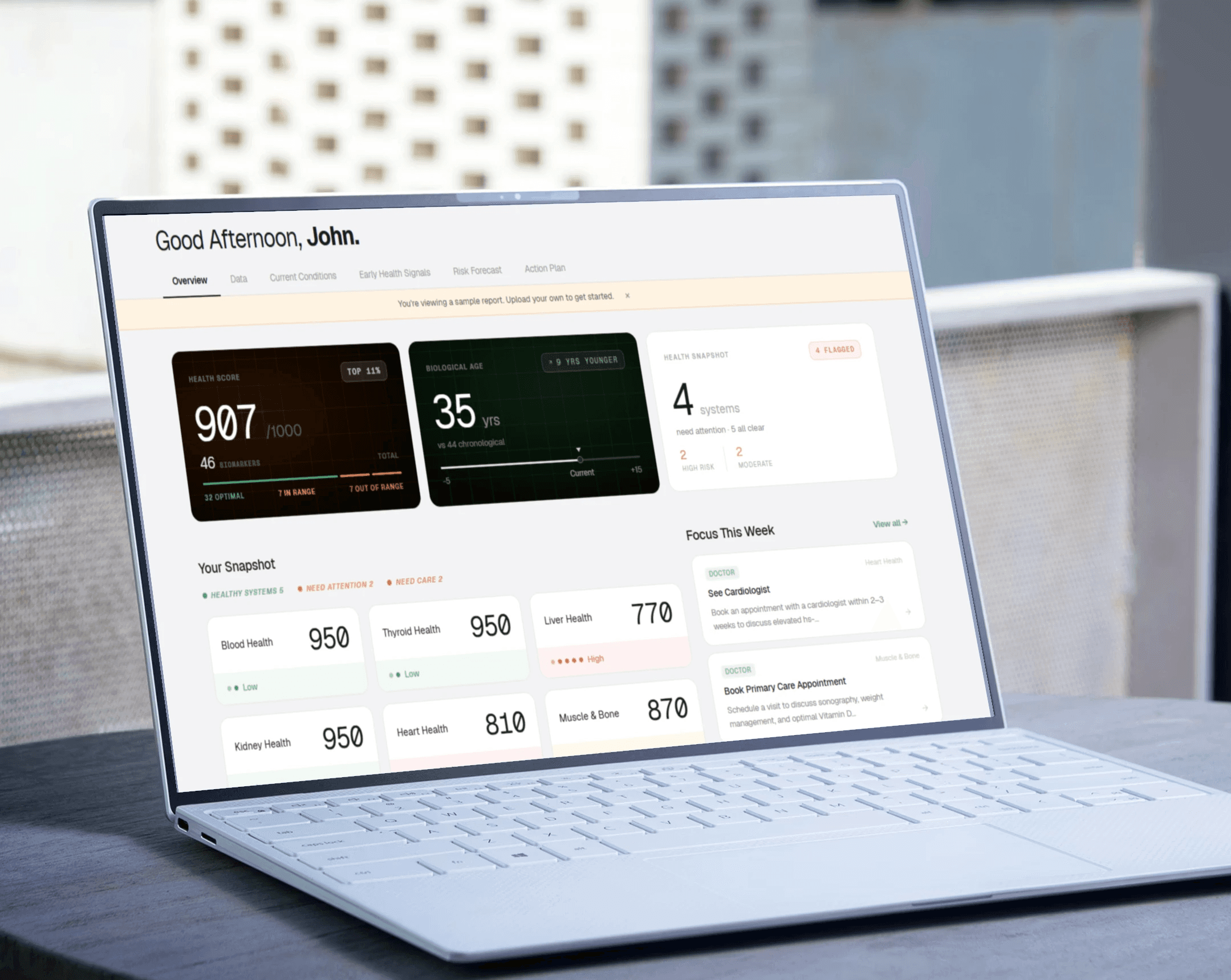 The analytical brain of your health stack, synthesizing complex data from over 50 biomarkers into a single, intuitive narrative of your internal biology. Rather than leaving you with a stack of confusing lab values, it provides a comprehensive Biological Age and organ-specific health scores to help you visualize exactly where you stand on the spectrum of longevity.